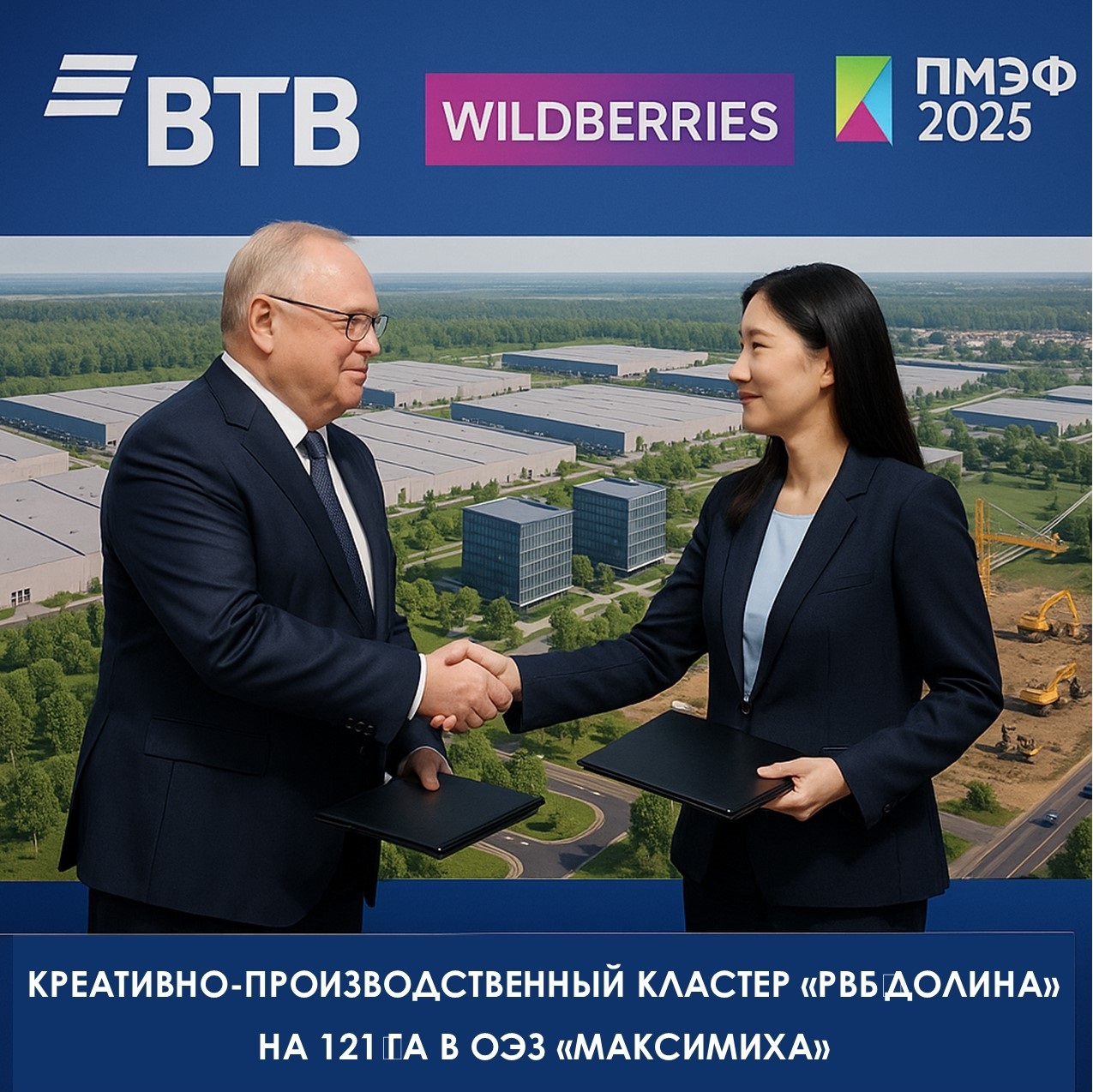 ✅ Что происходит: ВТБ и объединённая компания Wildberries & Russ (ООО «РВБ») подписали соглашение на ПМЭФ‑2025 о создании креативно‑производственного кластера «РВБ Долина» на 121 га в ОЭЗ «Максимиха»