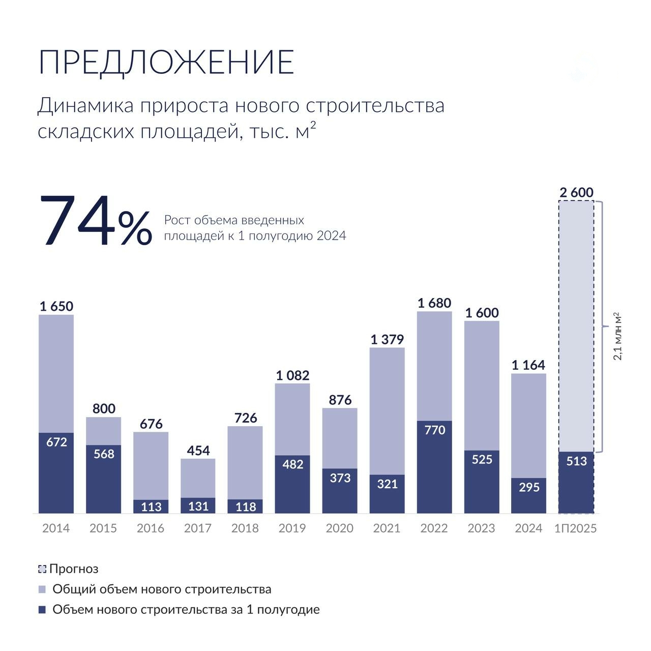 📊 В первом полугодии 2025 года было введено в эксплуатацию 513 тыс. кв. м. складской недвижимости формата big box, что на 74% превышает показатели аналогичного периода прошлого года!