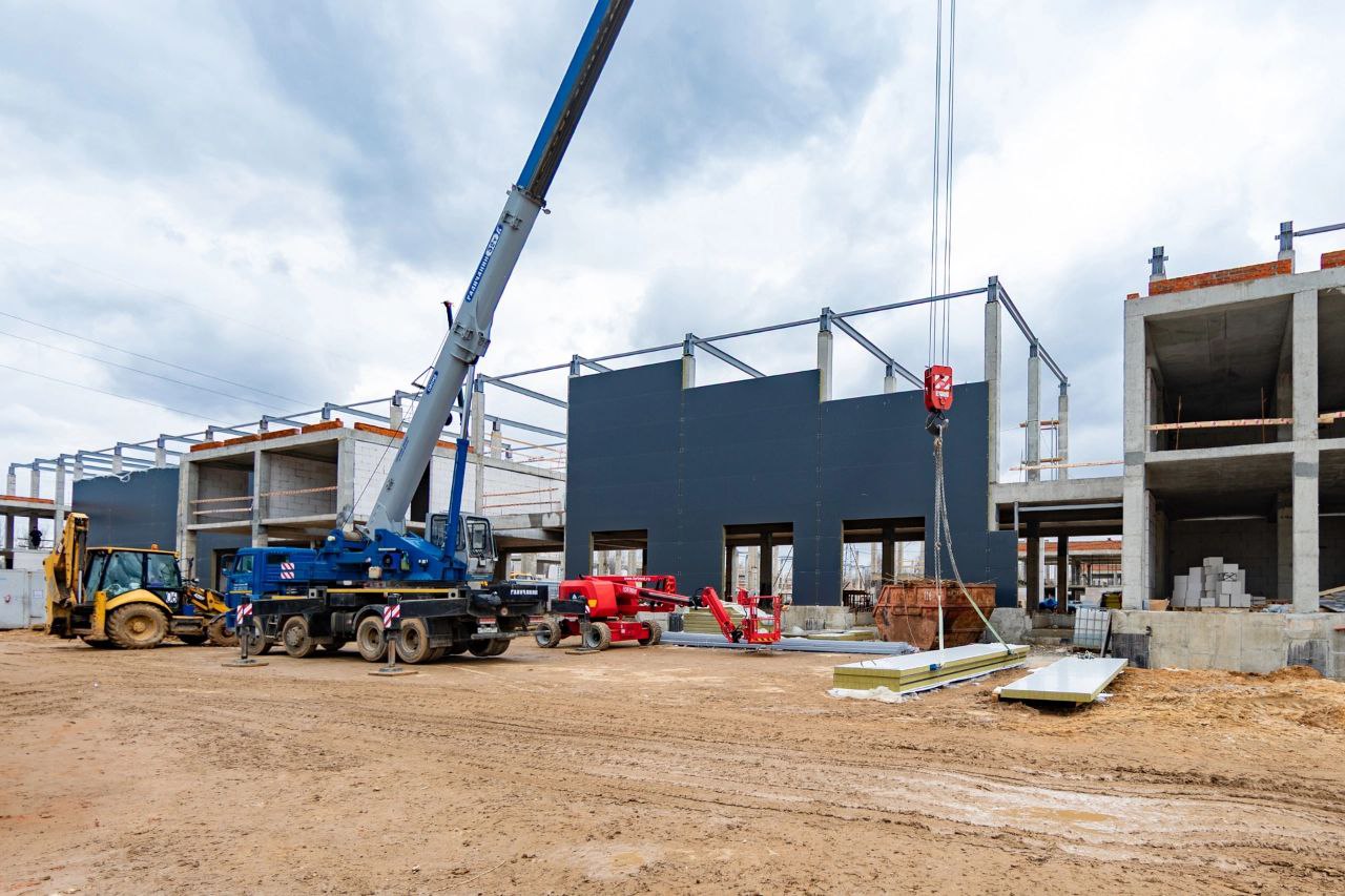 На площадке работает порядка 50 специалистов, задействовано 5 единиц техники. Строительство идет без перерывов, и мы уверены в своевременной сдаче объекта уже в этом году! ⏳